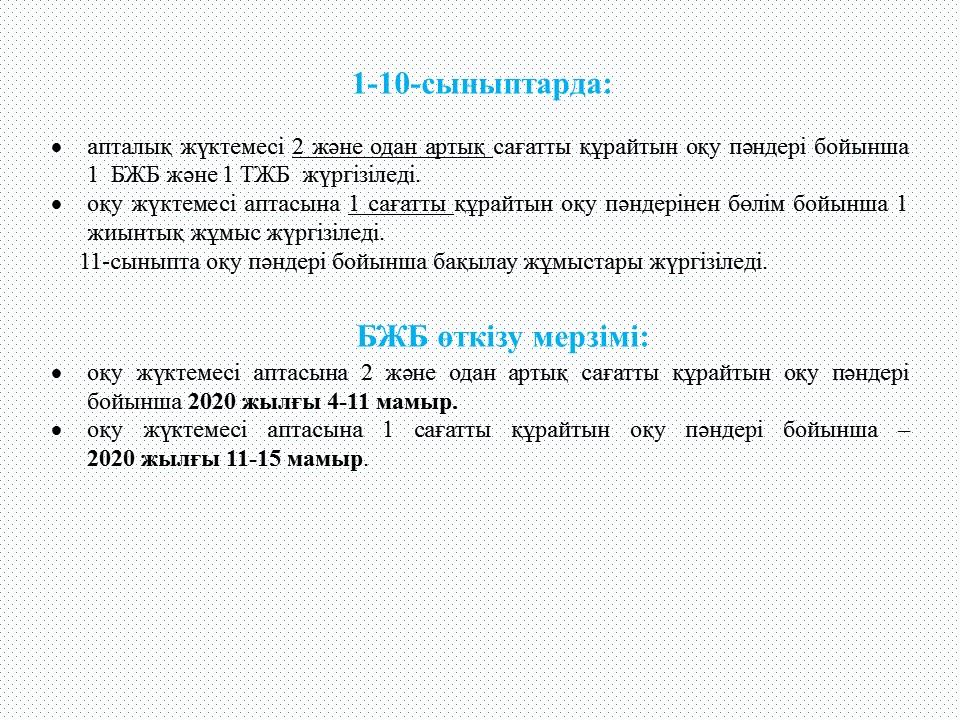 02 сәуір 2020 Қашықтықтан оқыту жағдайында жиынтық жұмыстарды жүргізу жөніндегі әдістемелік ұсынымдар