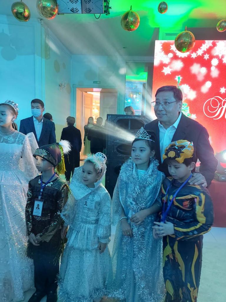Балалар «Жаңа жылдық сиқыр» музыкалық-интерактивті шоу-спектакліне қатысты. Аяз Ата мен Ақшақар ертегі кейіпкерлерімен бірге шыршаның шамын жақты. Іс-шара соңында бүлдіршіндерге ел Президенті атынан жаңа жылдық сыйлықтар берілді.