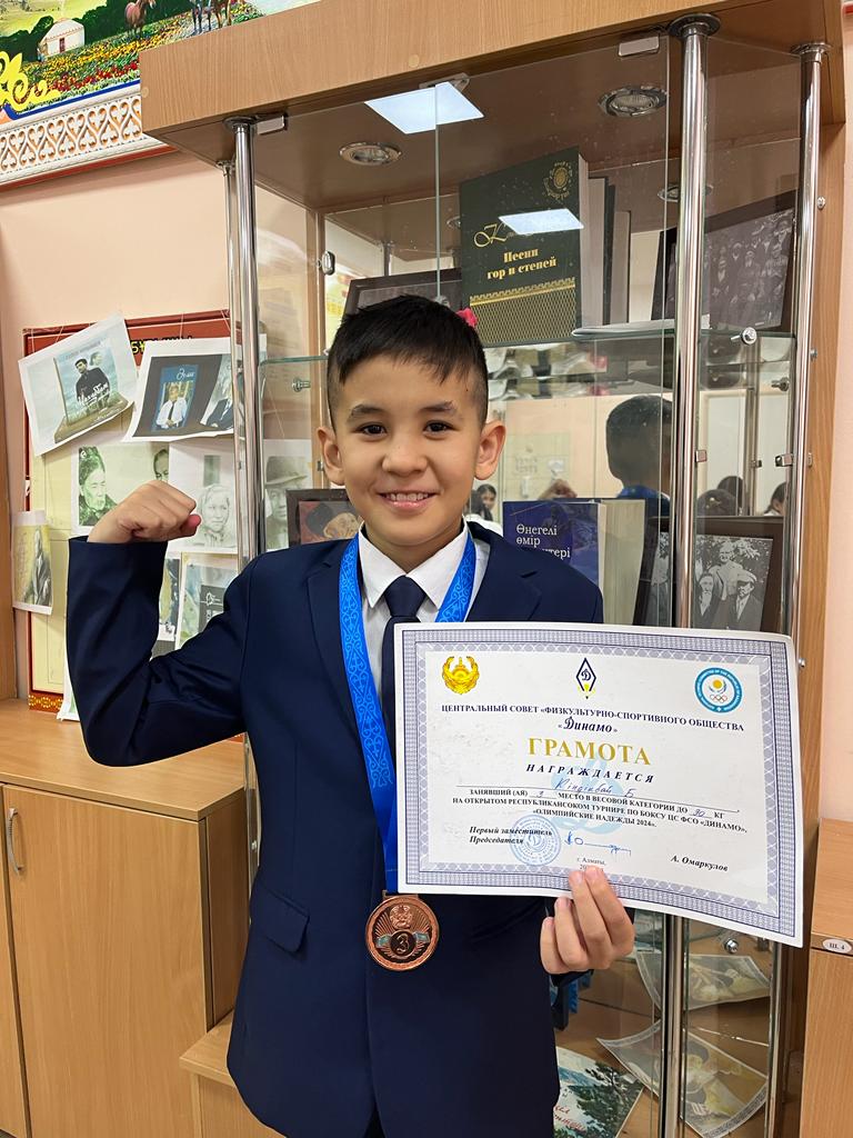 Мектебіміздің 6-сынып оқушысы Кіндікбай Бексұлтан «Динамо» республикалық дене тәрбиесі және спорт бірлестігінің ұйымдастыруымен өткен турнирде жеңіс тұғырынан көрініп, жүлделі III орын иегері атанды. Мектеп мерейін асқақтатқан шәкіртімізді шын жүректен құттықтаймыз!