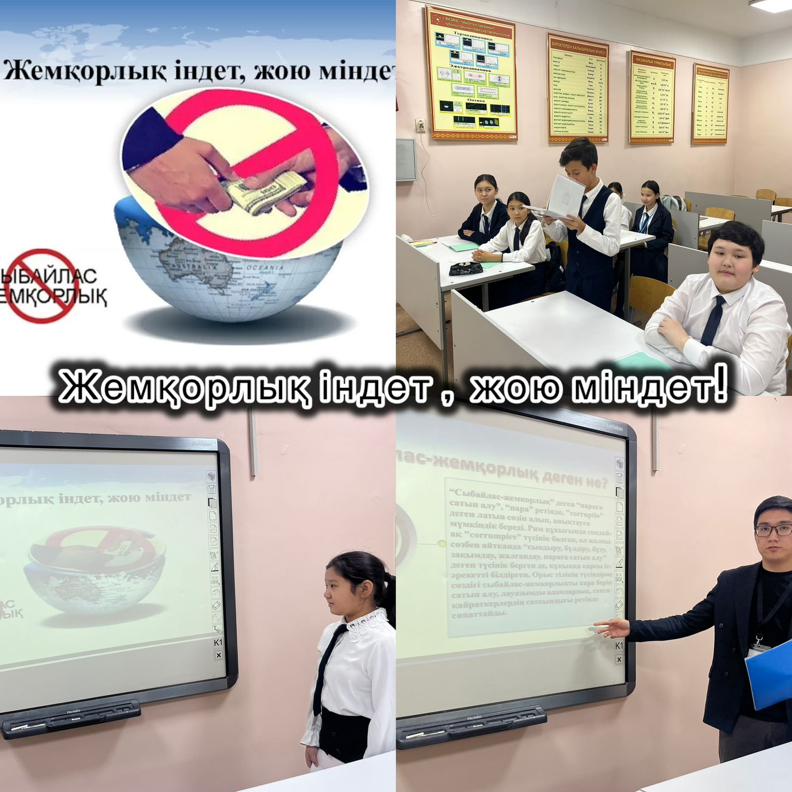 2024 жылдың 25 қараша күні №93 жалпы білім беретін мектебінде 7”А” сыныбы “Жемқорлық індет, жою міндет!” тақырыбында сынып сағатын өтті.