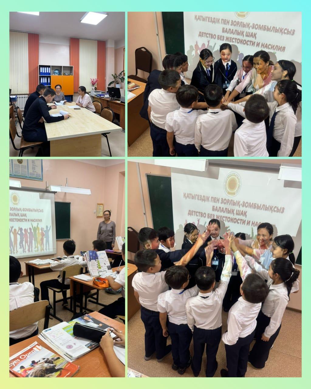 № 93 жалпы білім беретін мектебінде "Зорлық-зомбылықсыз 16 күн " ақпараттық науқаны аясында 2024 жылдың 25 қараша 10 желтоқсан аралығында «Зорлық-зомбылықтың алдын алу мәселелері» тақырыбында оқушыларға түсіндіру жұмыстары және дөңгелек үстел өтті. Бұл іс-шараға Бостандық АПБ полиция капитаны Тайкенов Алпамыс Ертайулы, Бостандық АПБ полиция лейтенанты Қойшыбай Дінмұхамедалі Асқарұлы және ДТІЖО А.Ч.Кожалимова . А.С.Елубай, мектеп психологы Г.Е.Базарымбетова қатысты.