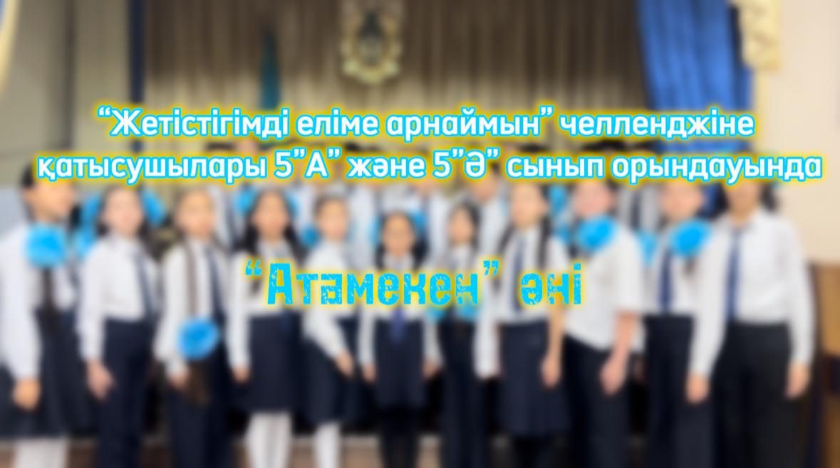 13 желтоқсан 2024 ЖЕТІСТІГІМДІ ЕЛІМЕ АРНАЙМЫН ЖЕТІСТІГІМДІ ЕЛІМЕ АРНАЙМЫН“Шабыт” жобасы аясында “Жетістігімді еліме арнаймын” челленджіне қатысушылары 5”А” және 5”Ә” сынып орындауында “Атамекен” әні