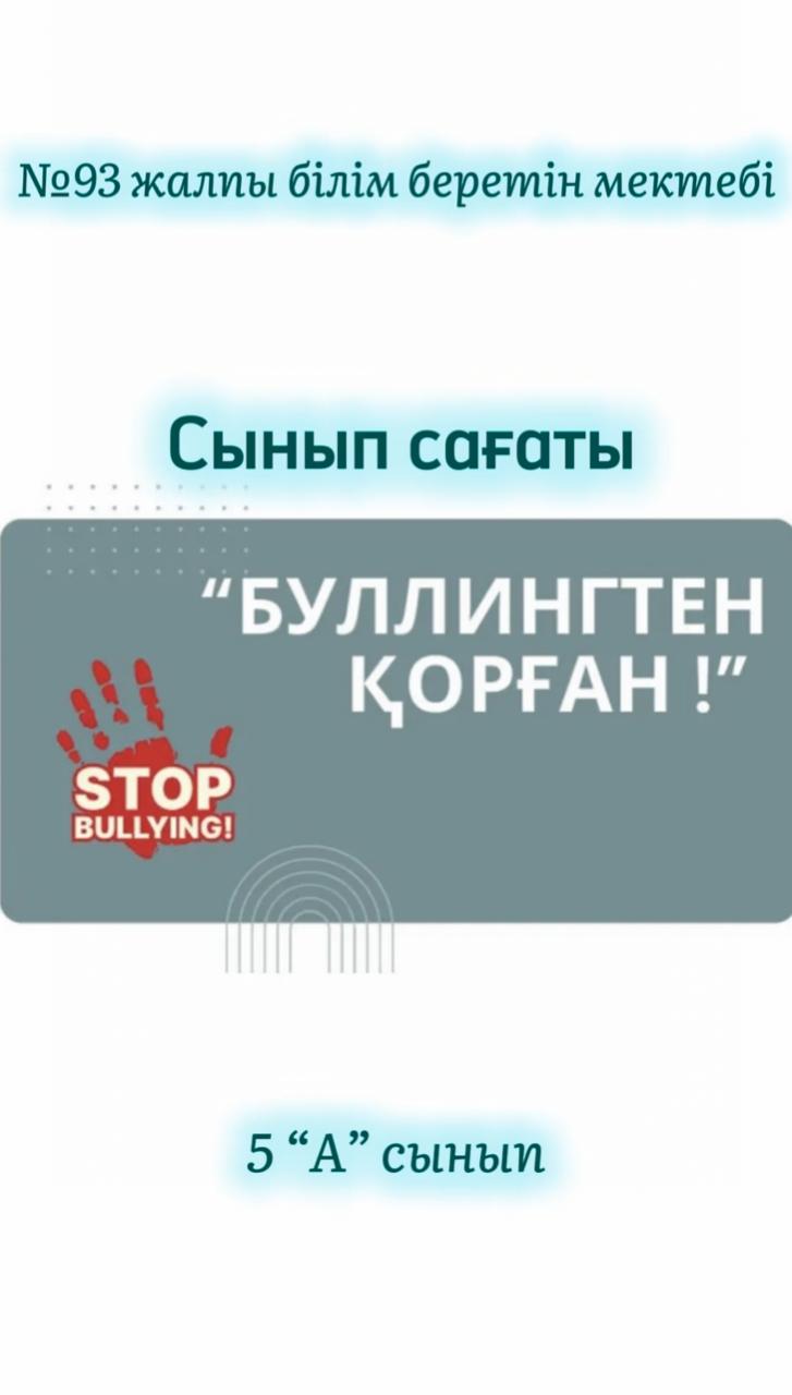 2025 жылдың 20 қаңтар күні №93 жалпы білім беретін мектебі 5”А” сыныбында “Буллигтен қорған!” тақырыбында сынып сағаты өтті.