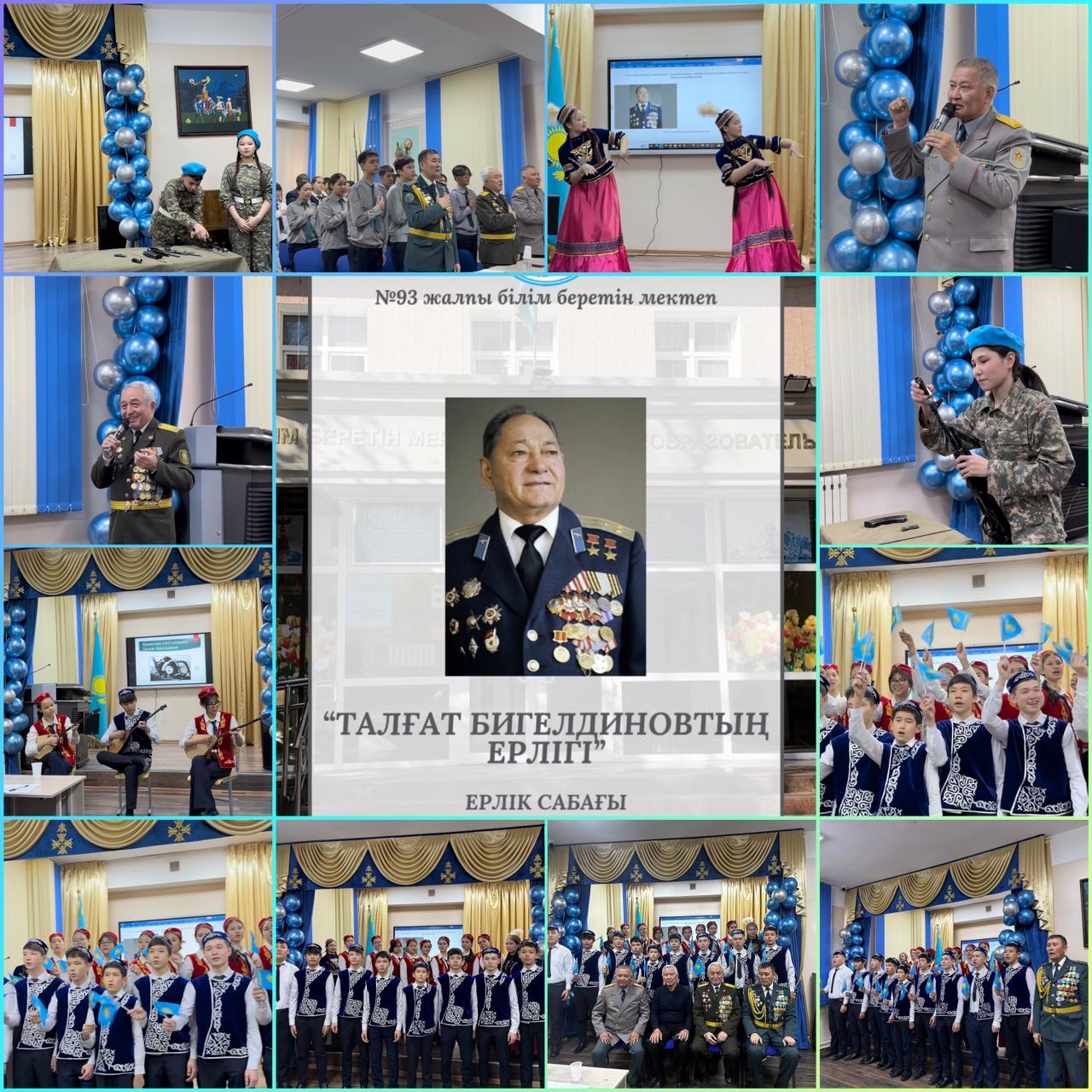 Ағымдағы жылдың 23 қаңтар күні мектебіміздің алғашқы әскери дайындық пәнінің мұғалімі, майор Кенебаев Карибай Даркембаевичтің ұйымдастыруымен «Ұлы Жеңістің 80 жылдығына орай», авиация генерал майоры, Кеңес Одағының екі мәрте батыры, «Барыс» орденінің иегері Талғат Жақыпбекұлы Бигелдинов туралы Ерлік сабағы өтті.
