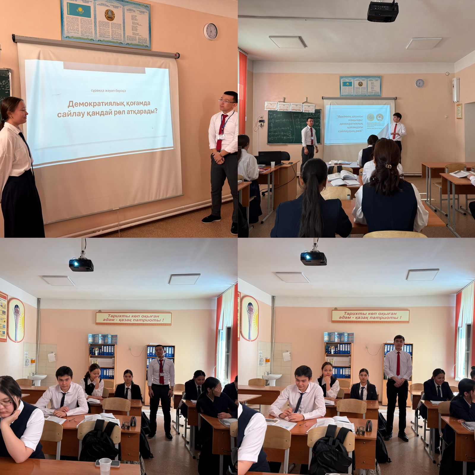 03 ақпан 2025 СЫНЫП САҒАТТАРЫ СЫНЫП САҒАТТАРЫ 2025 жылдың 3 ақпан күні №93 жалпы білім беретін мектебінде Дүниежүзілік сайлау күніне орай “Әркімнің даусы маңызды: демократиялық қоғамдағы сайлаудың рөлі” тақырыбында сынып сағаттар өтті. Сынып жетекшісі: Калназарова Д.Ш.