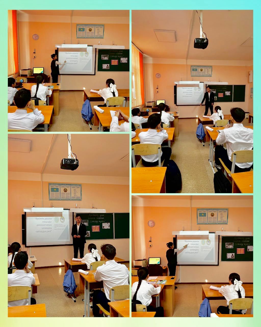 03 ақпан 2025 СЫНЫП САҒАТТАРЫ СЫНЫП САҒАТТАРЫ 2025 жылдың 3 ақпан күні №93 жалпы білім беретін мектебінде Дүниежүзілік сайлау күніне орай “Әркімнің дауысы маңызды: демократиялық қоғамдағы сайлаудың рөлі” тақырыбында сынып сағаттар өтті. Сынып жетекшісі: Самат А.С.