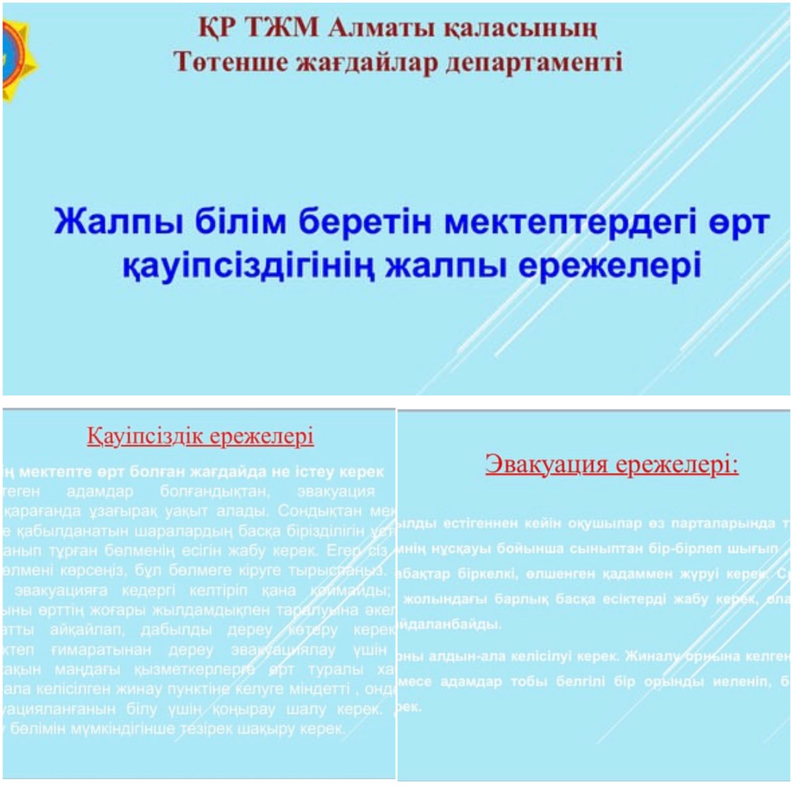 21 сәуір 2025 ҚАУІПСІЗДІК САБАҚТАРЫ ҚАУІПСІЗДІК САБАҚТАРЫ2025 жылдың 21 сәуір күні №93 жалпы білім беретін мектебінде 7-8 сыныптарға арналған “Өрт қауіпсіздігі” тақырыбында қауіпсіздік сабақтары өтті.
