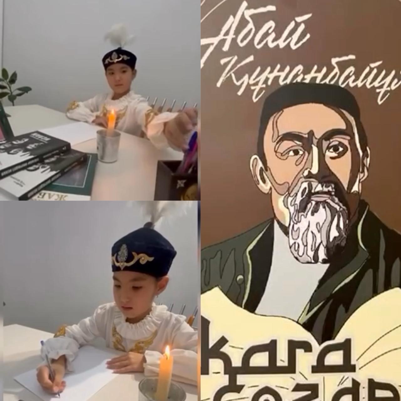Бостандық ауданы №93 жалпы білім беретін мектептің 3 “А” сынып оқушысы Айдарқызы Жания ұлы ақын, ағартушы Абай Құнанбайұлының 180 жылдығына орай 17-қара сөзін оқып, көрерменге әсерлі жеткізді.