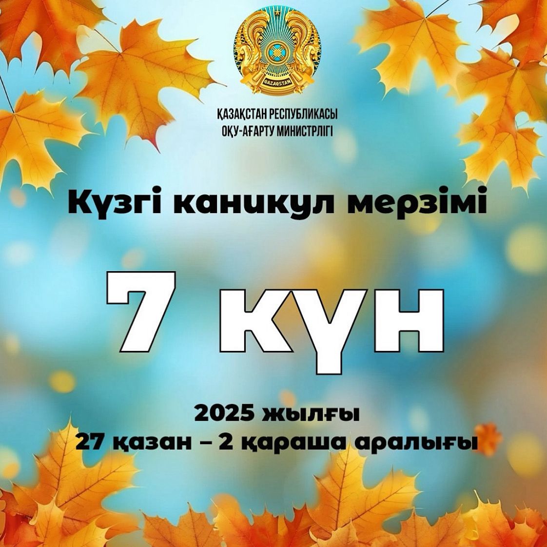 Күзгі каникул кезеңі 2025 жылғы 27 қазанда басталып, 2 қарашаны қоса алғанда жеті күнге созылады.