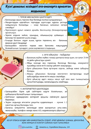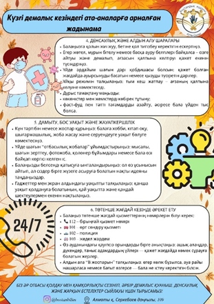 28 қазан 2025 АТА-АНАЛАР НАЗАРЫНА АТА-АНАЛАР НАЗАРЫНАКүзгі демалыс кезіндегі ата-аналарға арналған жадынама
