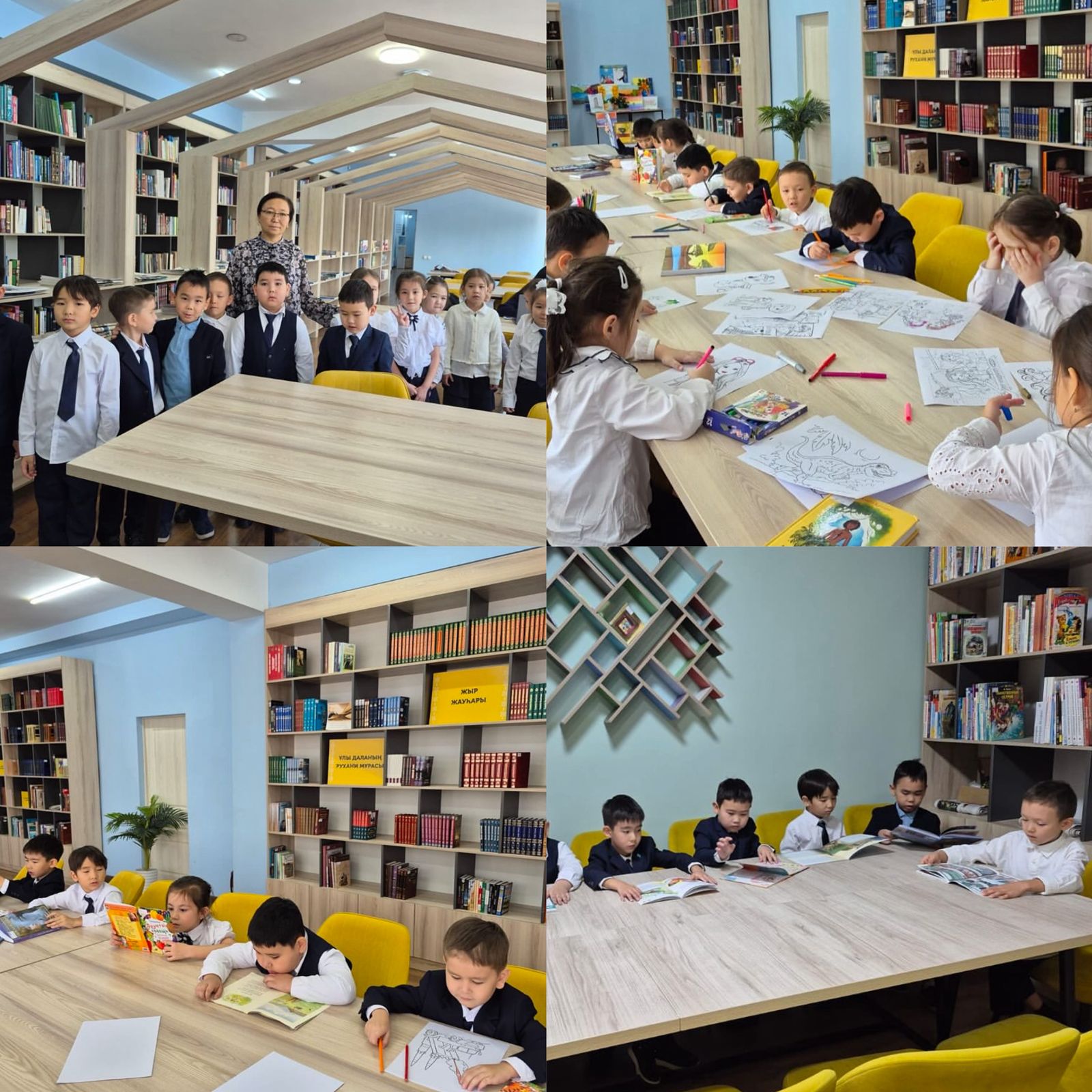 Күзгі демалыс уақытында бос уақытты тиімді пайдалану мақсатында №93 жалпы білім беретін мектебінің 1 «А» сыныбы И.А.Крылов атындағы балалар кітапханасына барды.