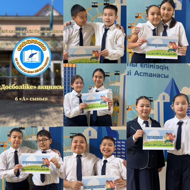 №93 жалпы білім беретін мектебінің 6 «А» сыныбында «Досболlike» бағдарламасын жүзеге асыру жұмысы аясында «Достық» акциясы ұйымдастырылды.