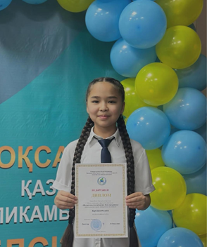 Алматы қаласы Білім басқармасы Қалалық білім берудегі жаңа технологиялардың ғылыми-әдістемелік орталығының ұйымдастыруымен орта білім беру ұйымдарының білім алушылары арасында өткізілген «Шығармашылық шеберхана: Бояулар құпиясы» атты қалалық сурет байқауының ІІІ дәрежелі диплом иегері 6 «Ә» сынып оқушысы Берістен Розлана марапатталды.