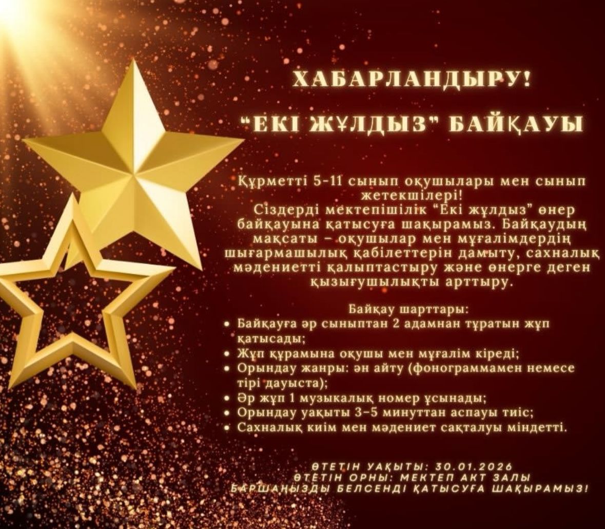 Мектебімізде «Екі жұлдыз» өнер байқауы өтеді!