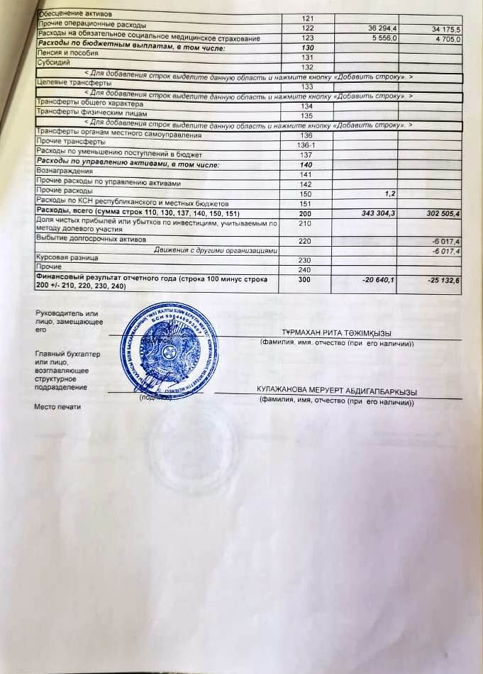 Қаржылық қызмет көрсеткіші 2019 жыл