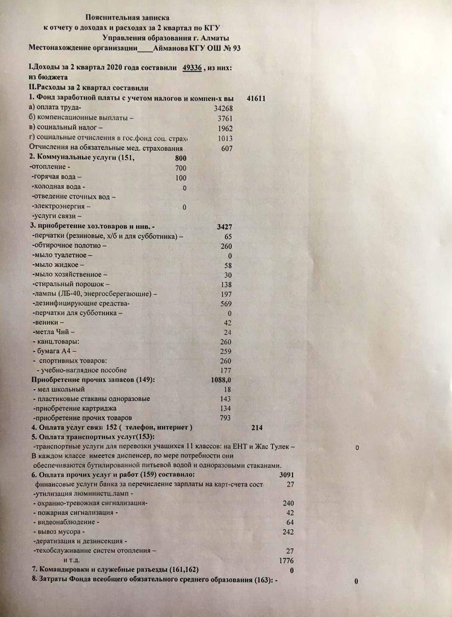 » 2020 жылдың II тоқсанындағы кірістер мен шығыстар туралы есеп