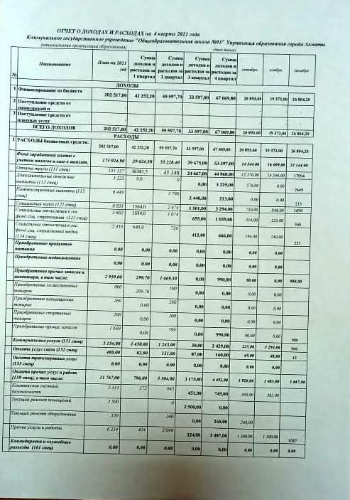 » 2021 жылғы IV тоқсандағы кірістер мен шығыстар туралы есеп