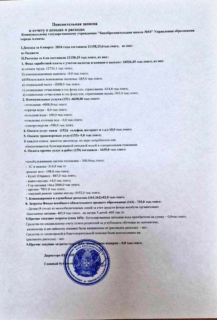 Коммунальное государственное учреждение «Общеобразовательная школа № 93 » Управления образования города Алматы