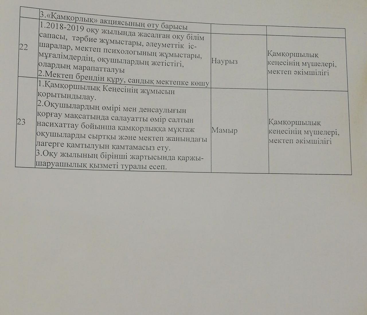 Қамқоршылық кеңестің жұмыс жоспары