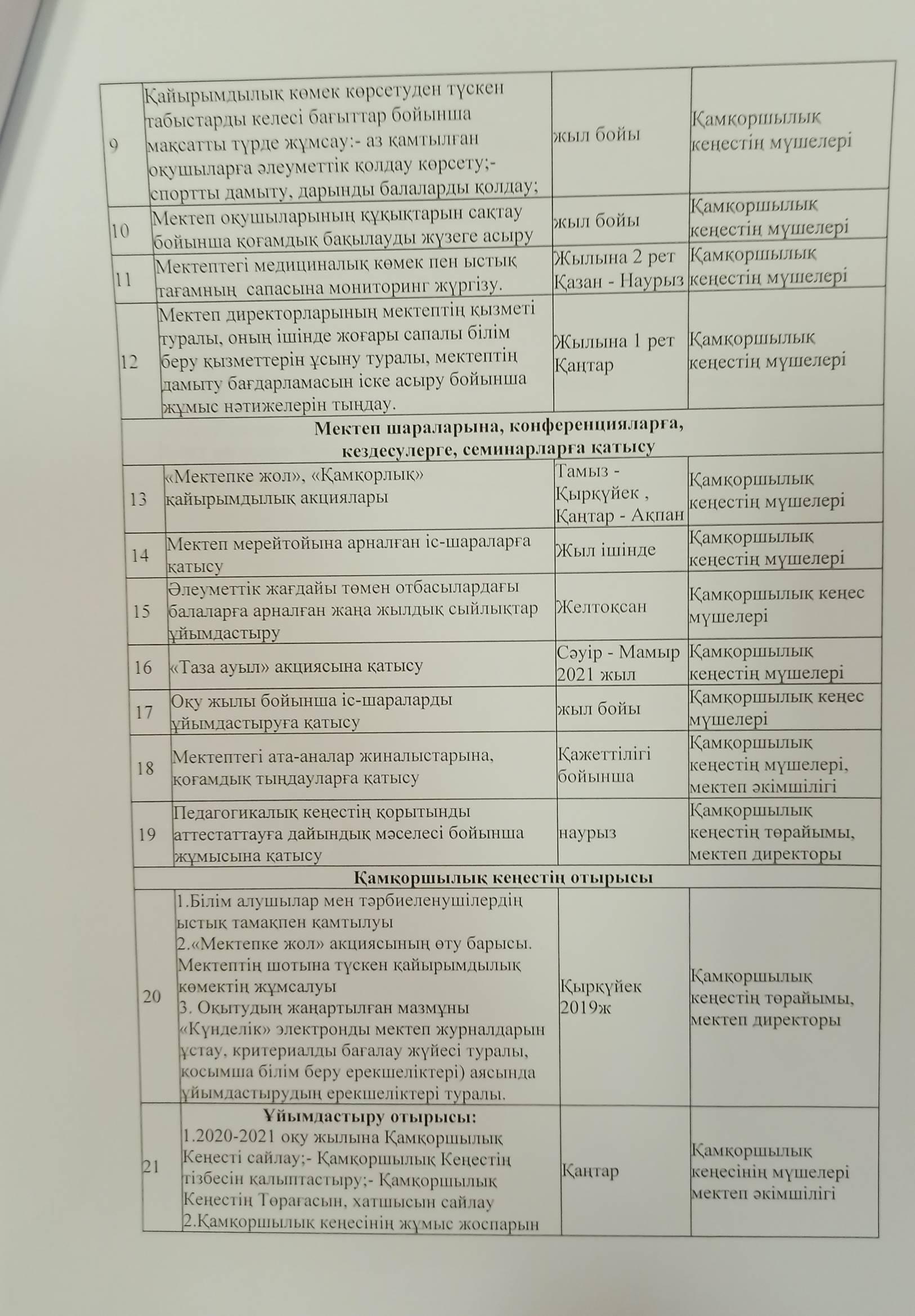 Қамқоршылық кеңестің жұмыс жоспары 2020-2021 оқу жылы