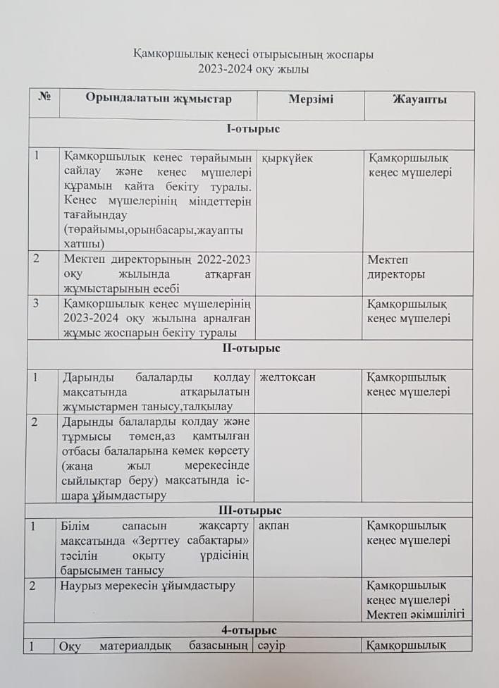 ҚАМҚОРШЫЛЫҚ КЕҢЕС ЖОСПАРЫ 2023-2024жыл