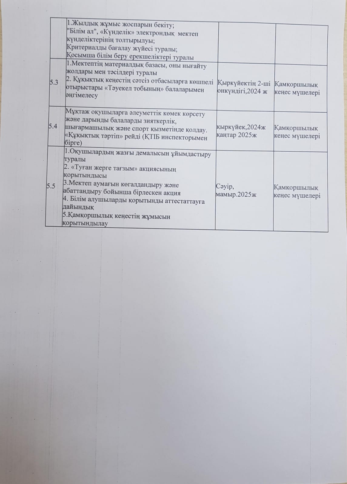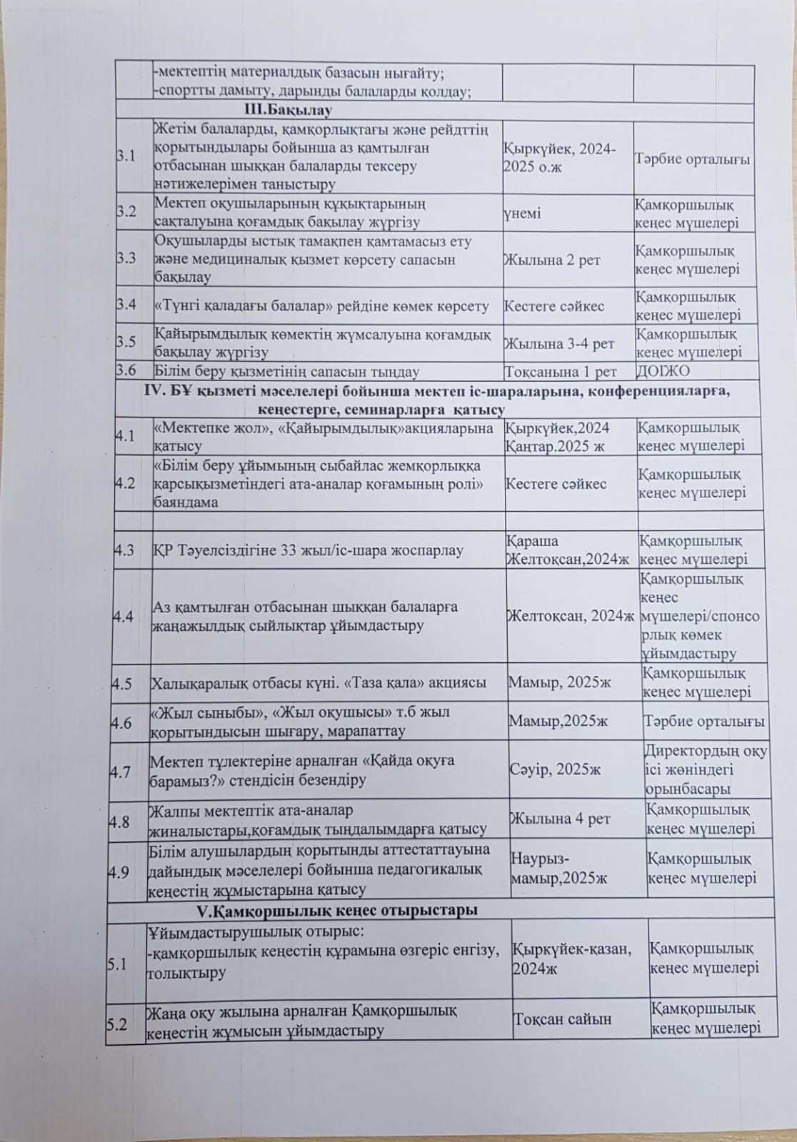 Қамқоршылық кеңестің жұмыс жоспары 2024-2025 оқу жылы