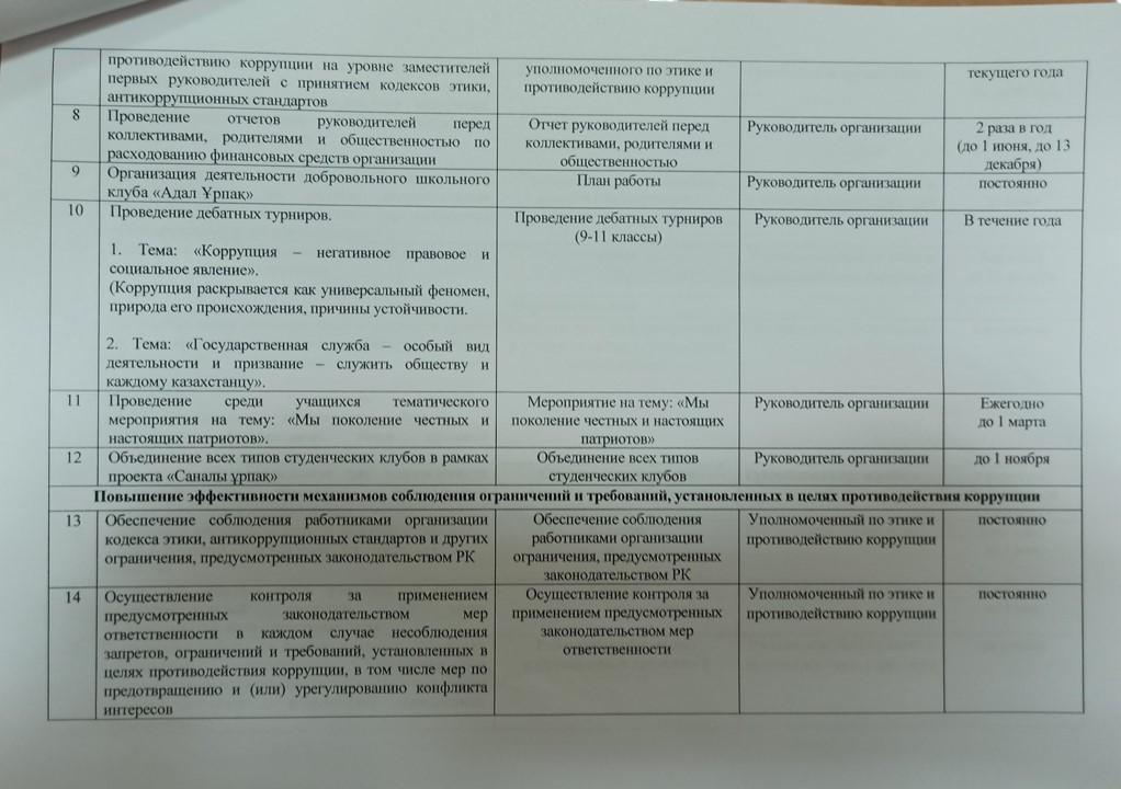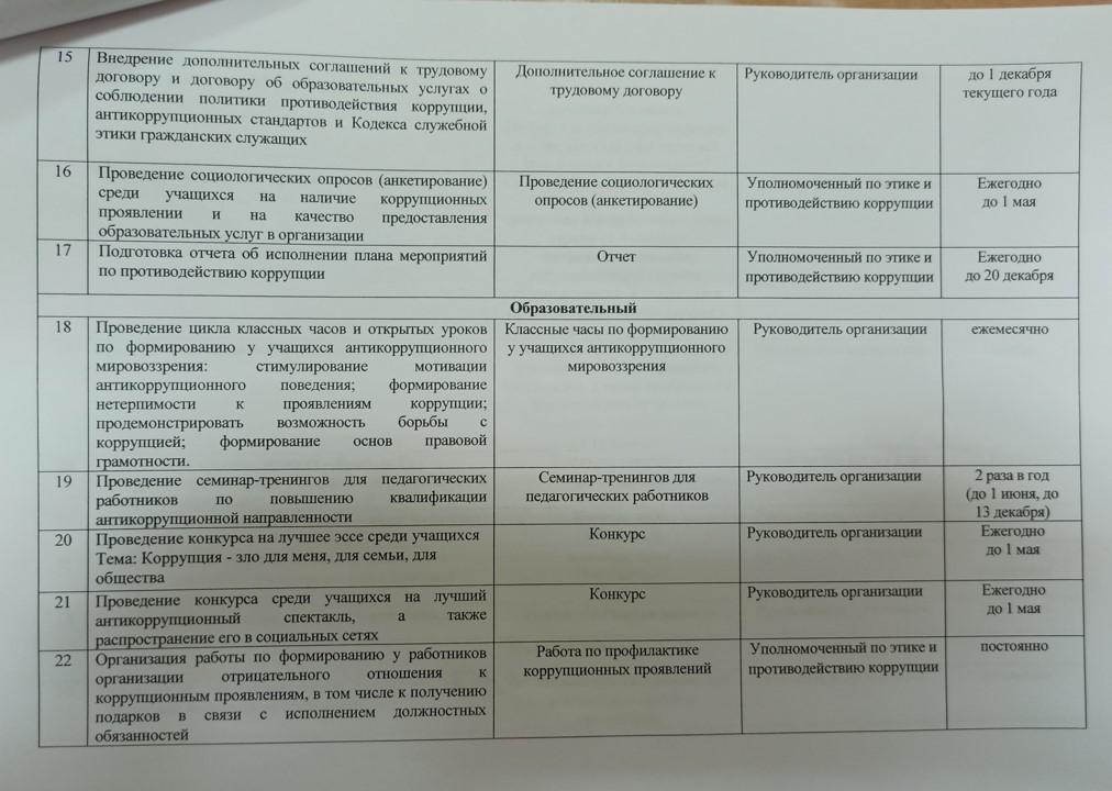 Комплексный план работы по противодействию коррупции на 2020-2021 учебный год