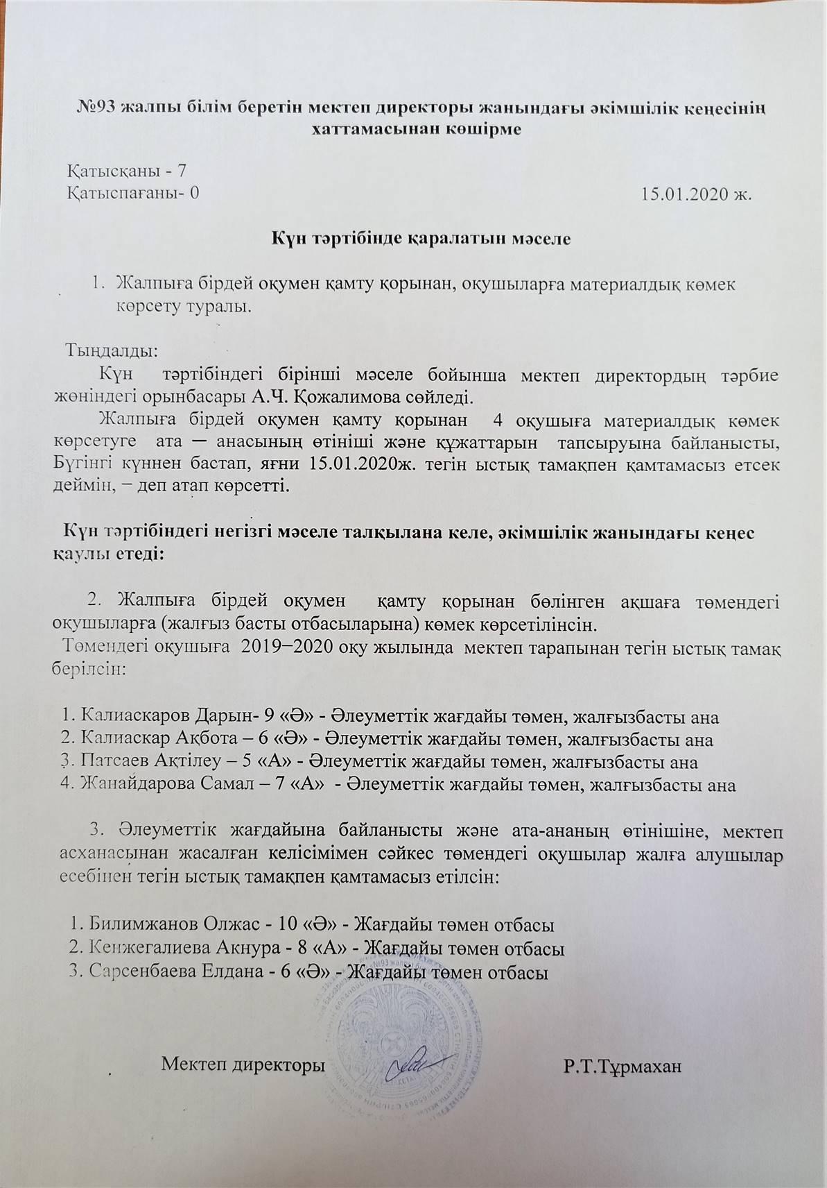 Директор жанындағы әкімшілік кеңестің хаттамасы