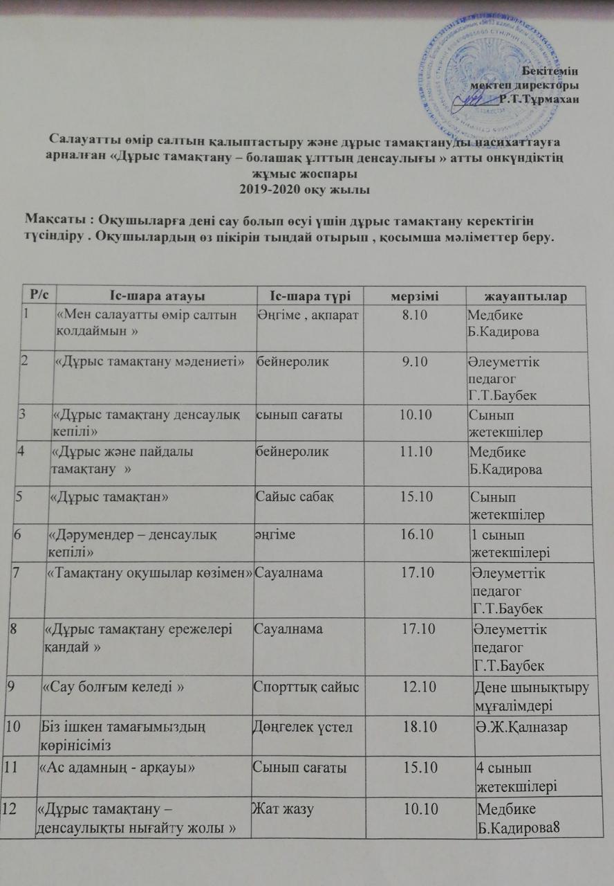 » Дұрыс тамақтану насихаттау іс шаралар жоспары