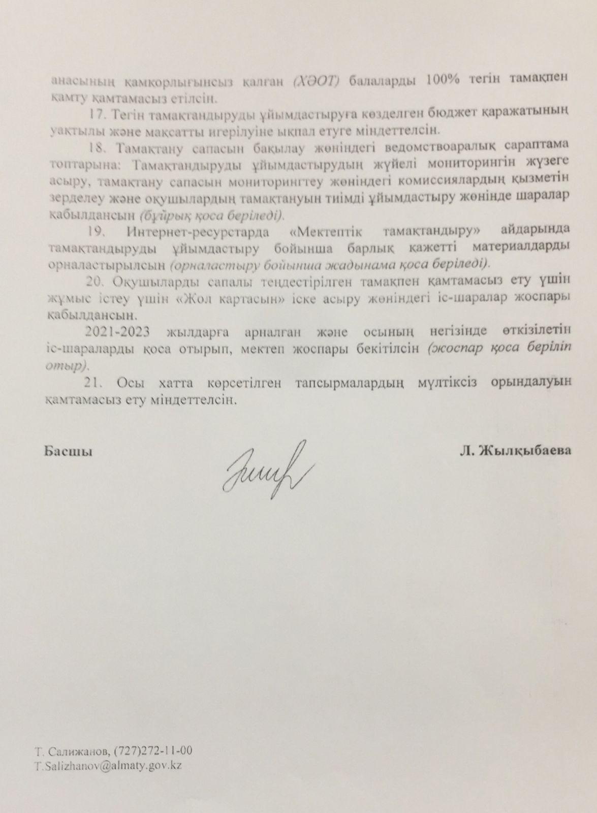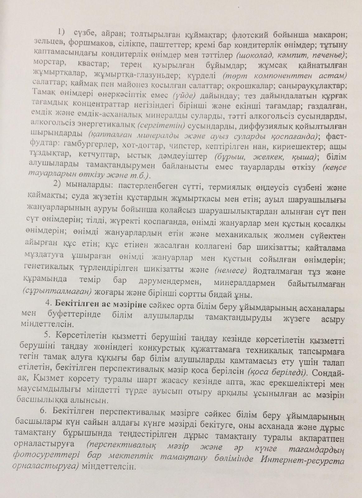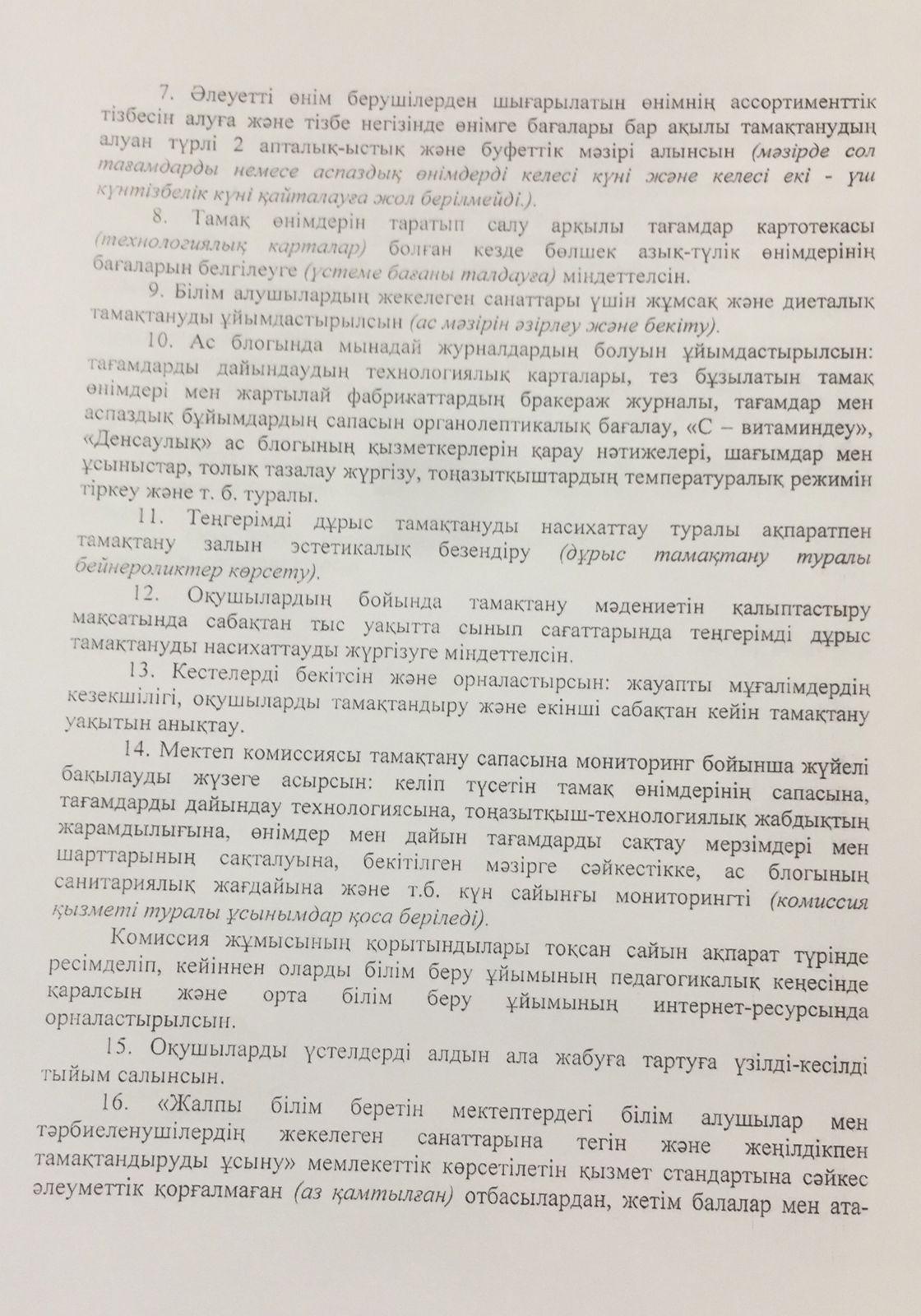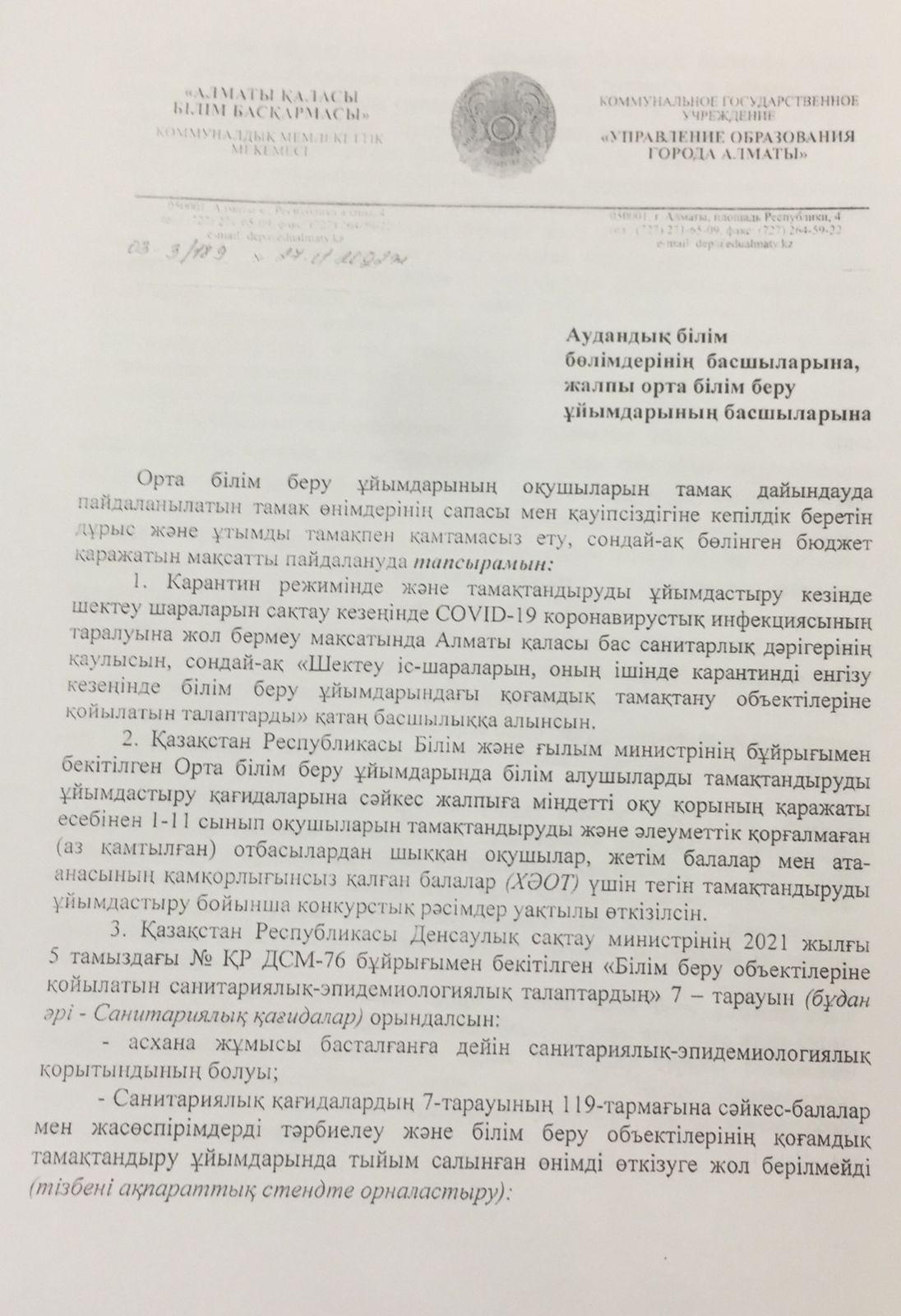 Алматы қаласы Білім басқармасының оқушыларды тамақтандыру кезінде сапалы және денсаулыққа қауіпсіз тамақ өнімдерімен қамтамасыз ету