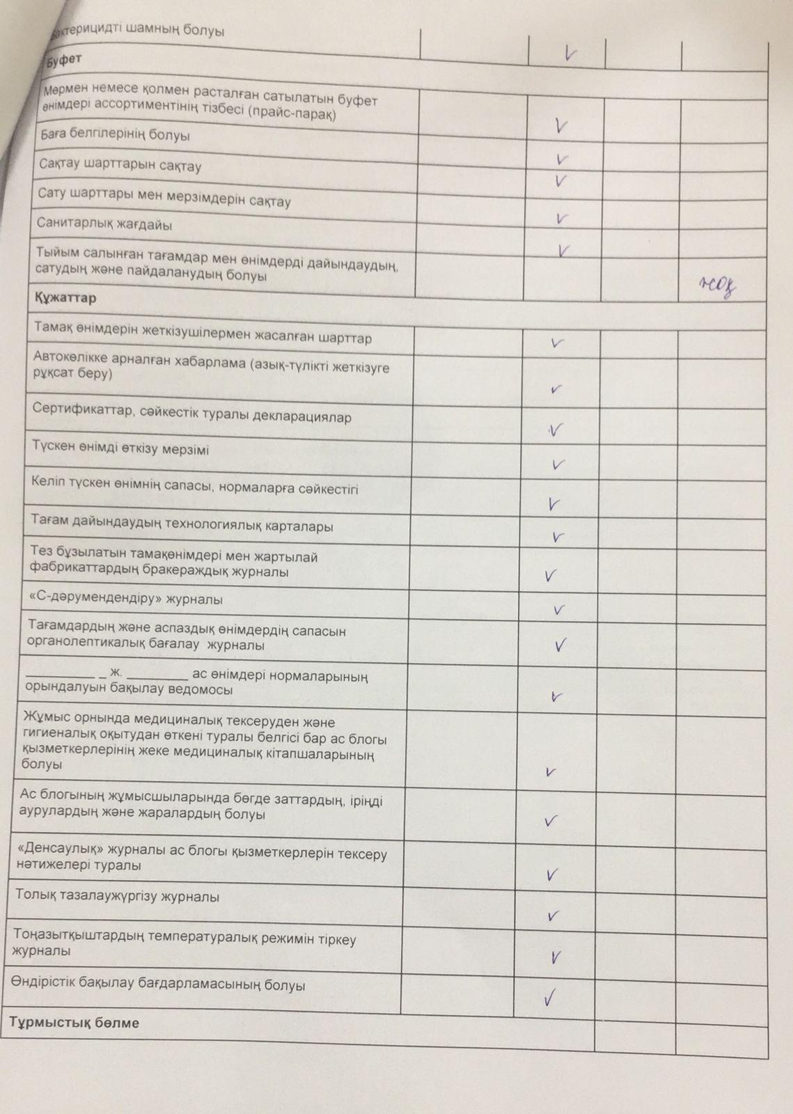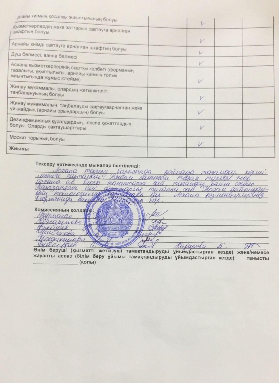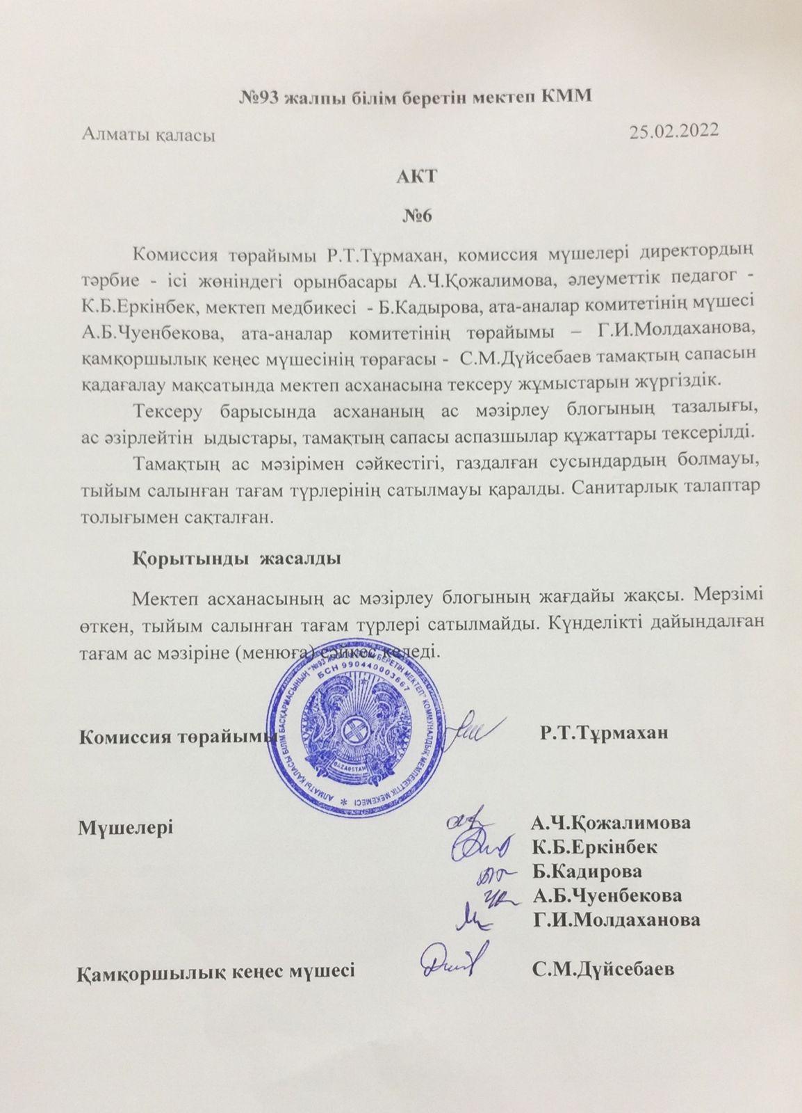 » Тамақтану сапасына мониторинг жүргізу актісі №6