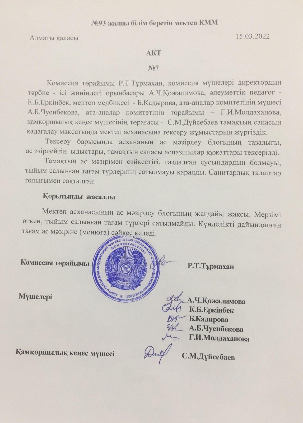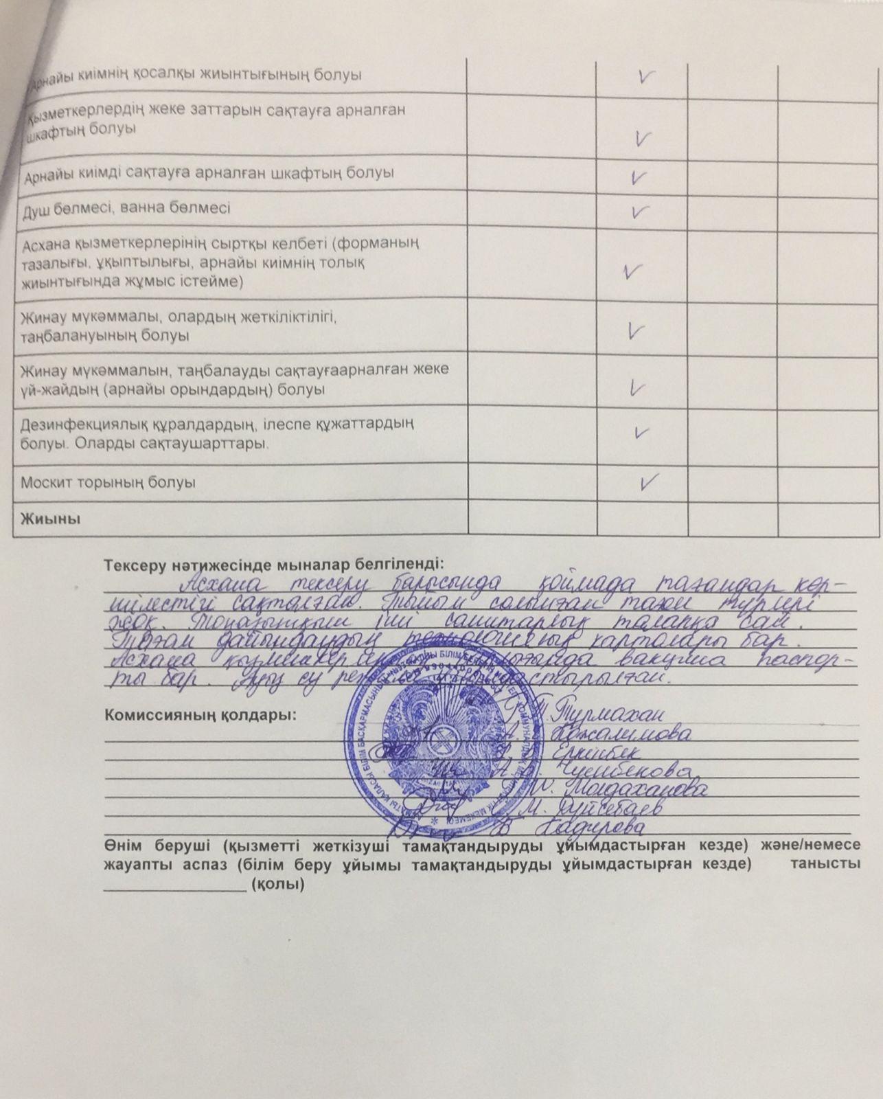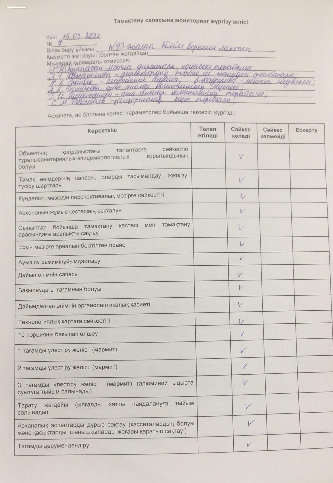 » Тамақтану сапасына мониторинг жүргізу қорытындысы