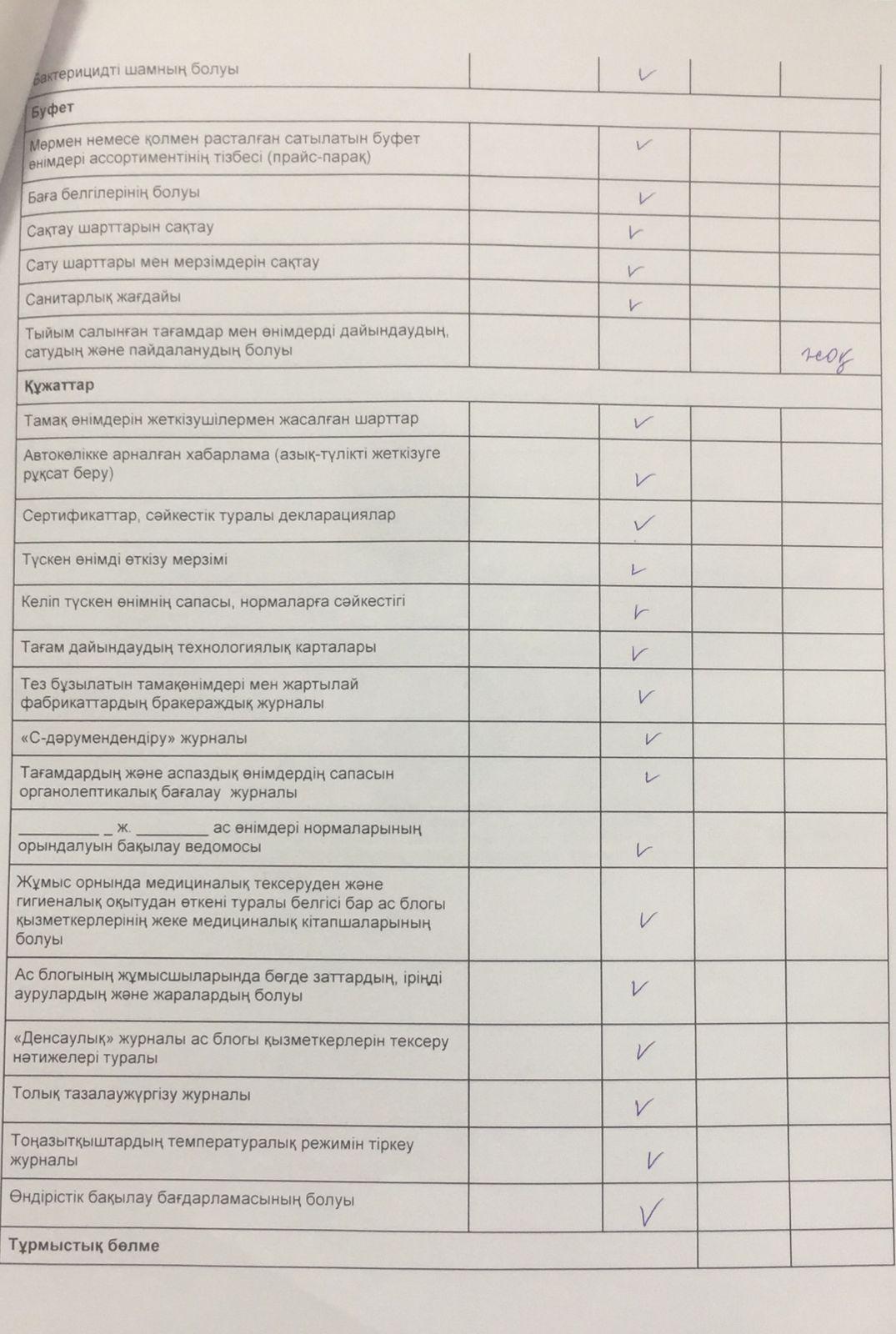 Тамақтандырудың сапасына мониторинг жүргізуін тексерудің қорытындысы