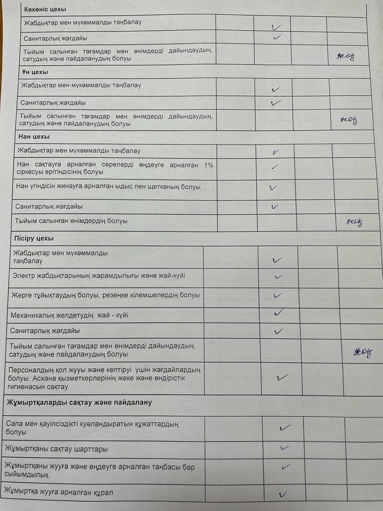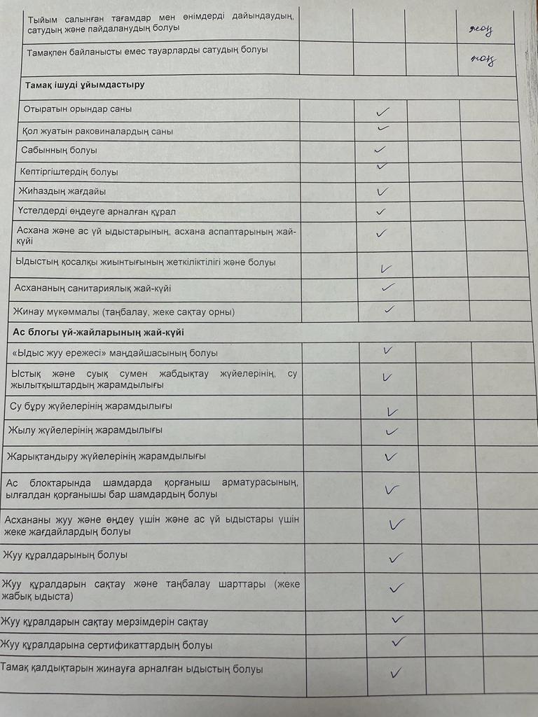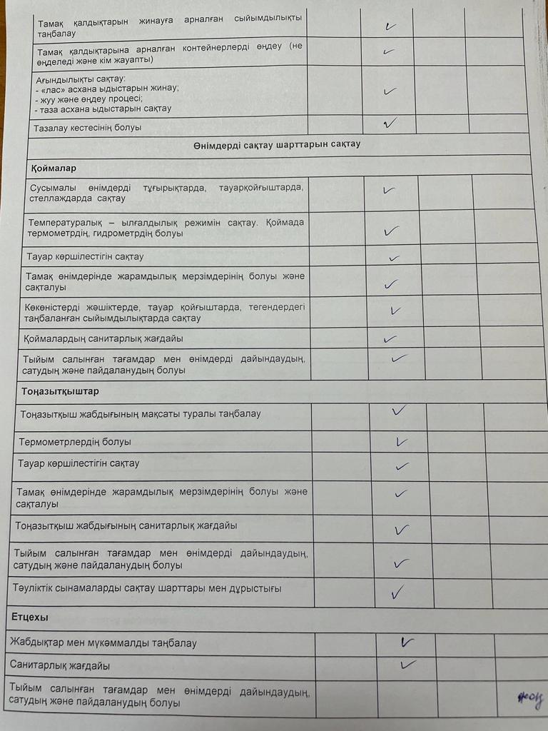 » Тамақтану сапасына мониторинг жүргізу актісі