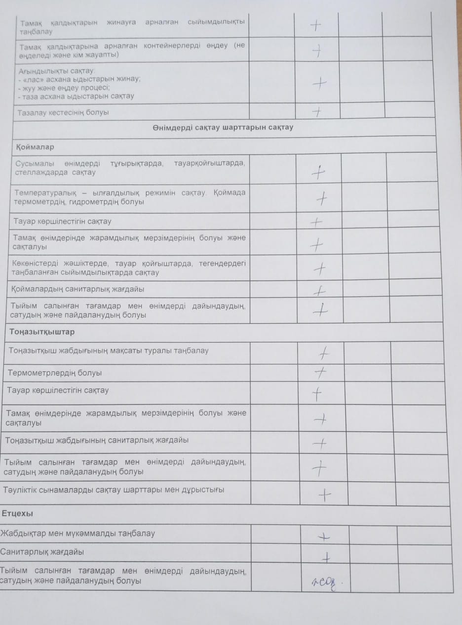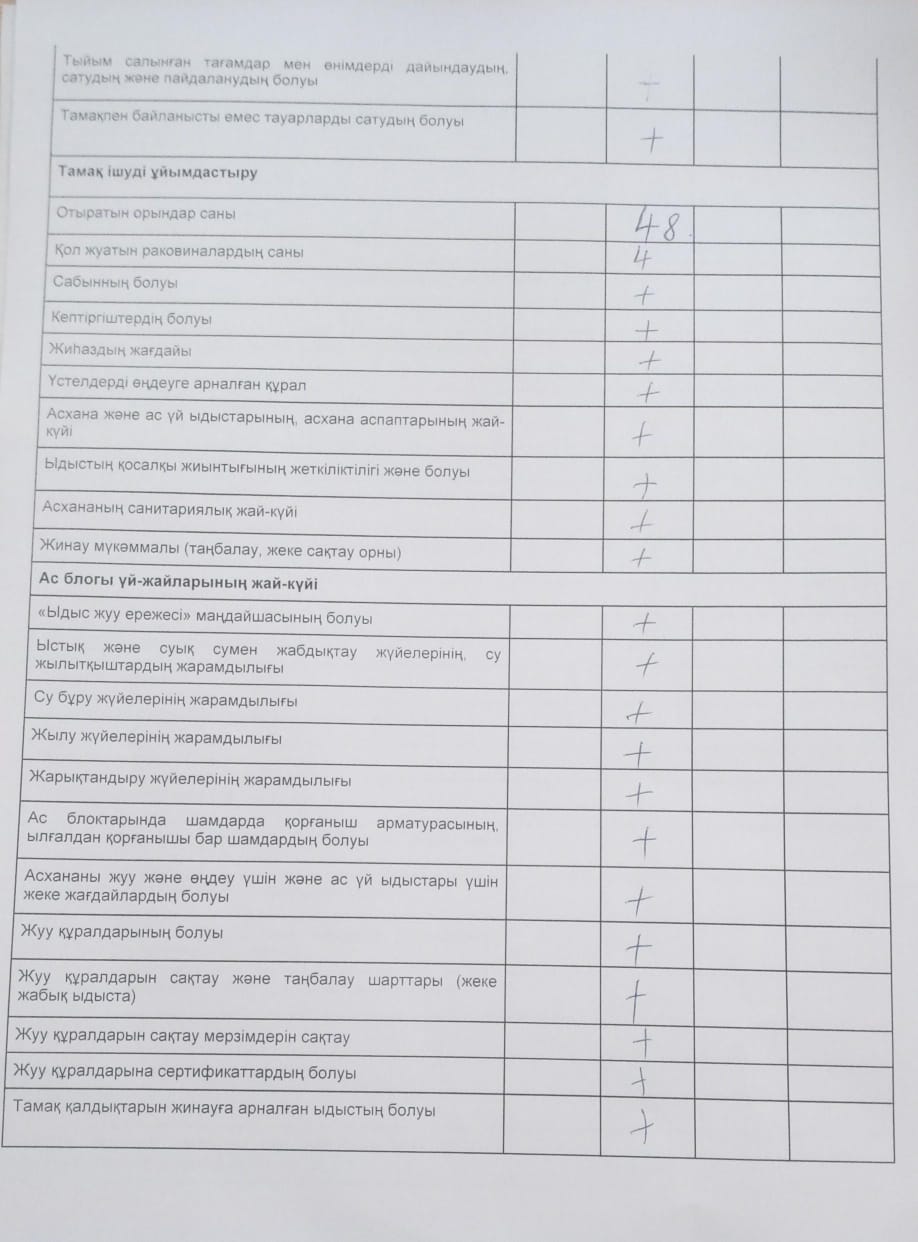 » Тамақтану сапасына мониторинг жүргізу АКТ №1