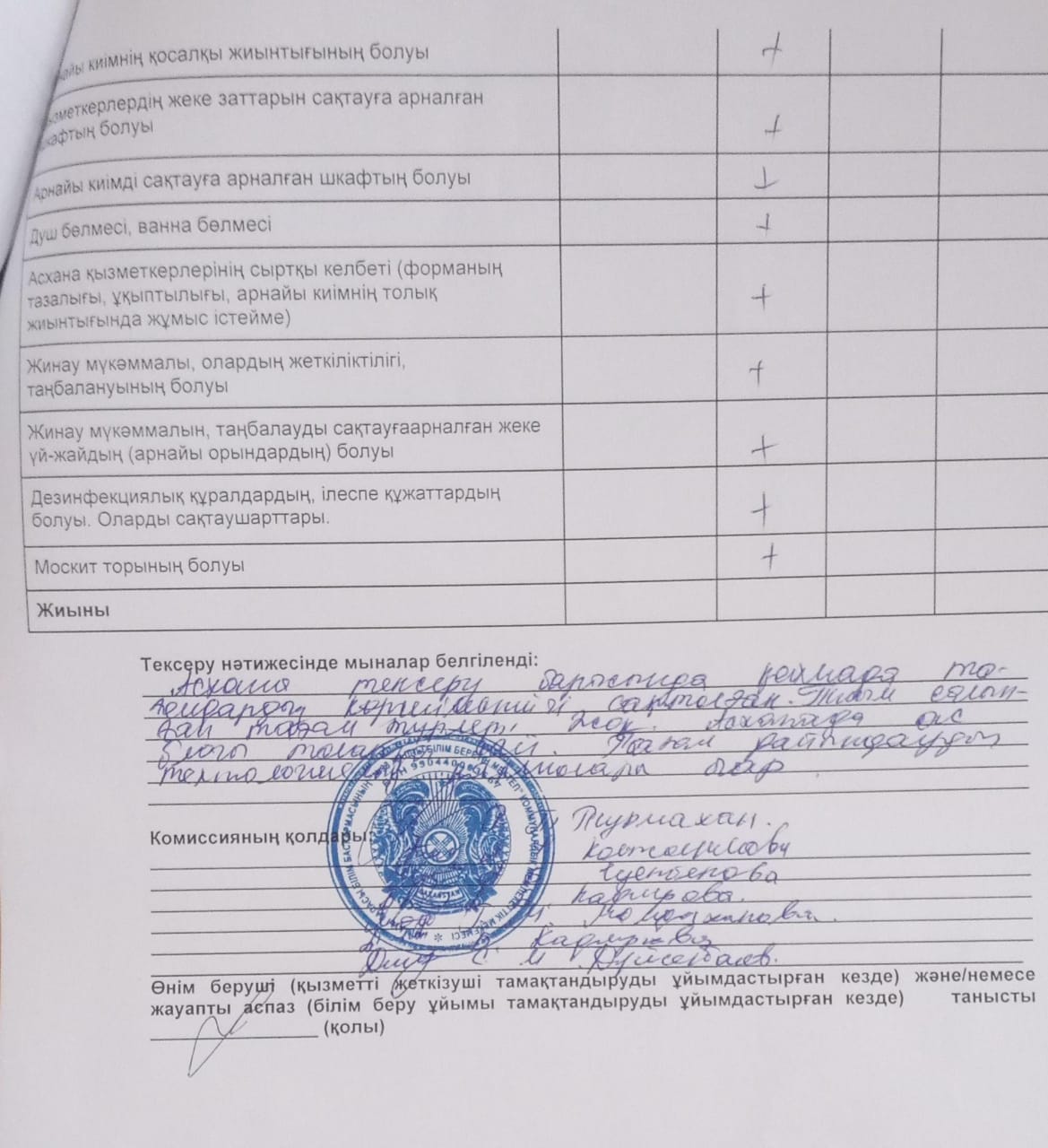 » Тамақтану сапасына мониторинг жүргізу АКТ №3