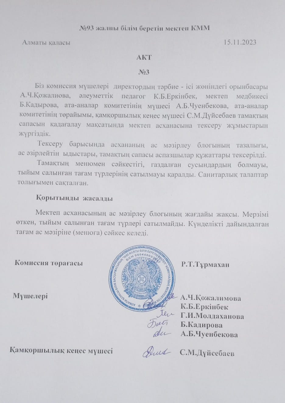 » Тамақтану сапасына мониторинг жүргізу хаттамасы Қараша айы