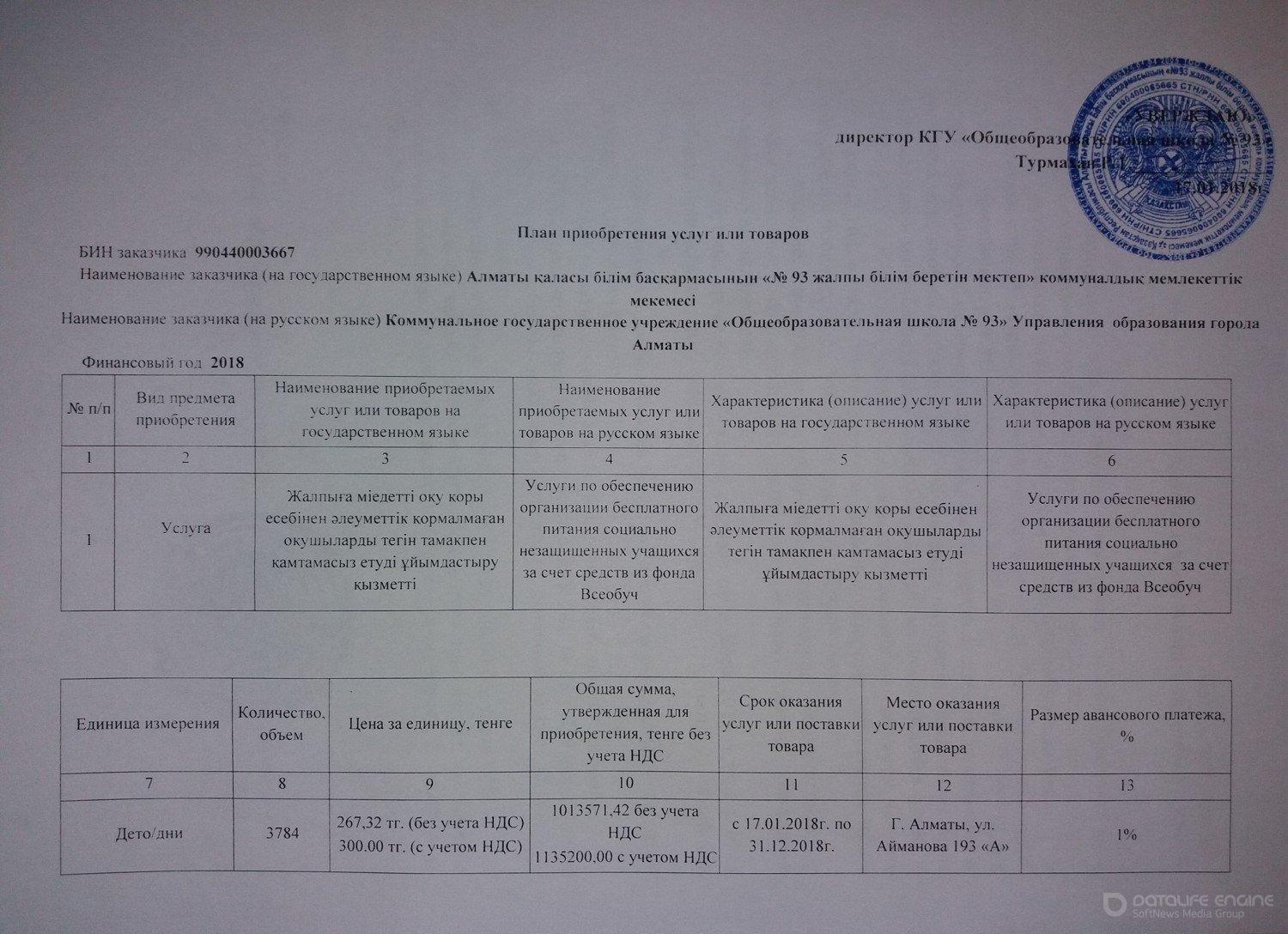 » Қызметтерді сатып алу жоспары 2018