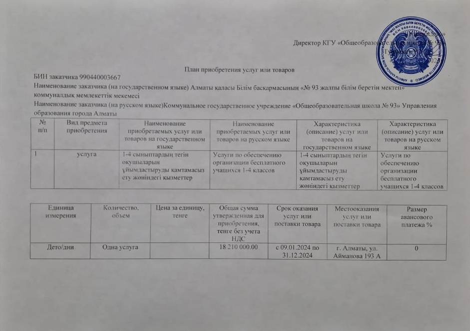 Коммунальное государственное учреждение «Общеобразовательная школа № 93 » Управления образования города Алматы